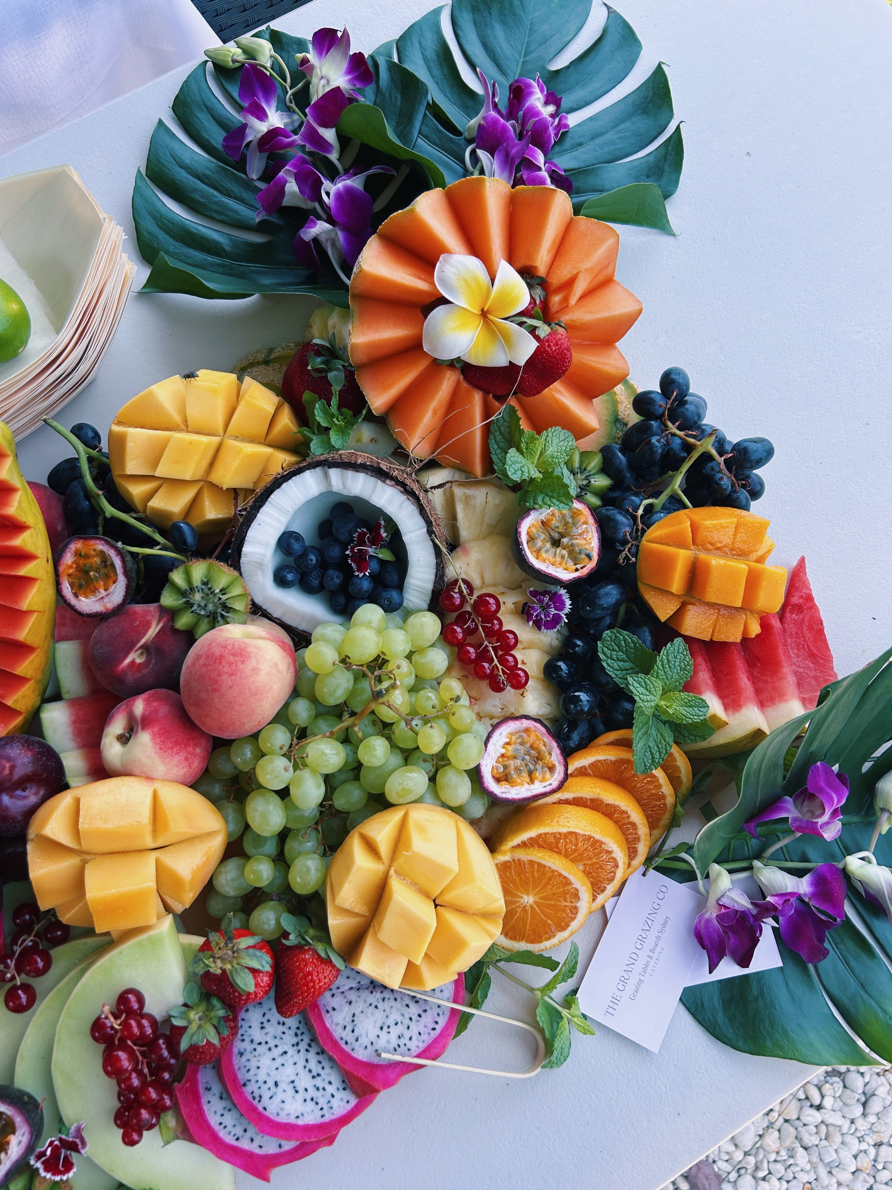 • Flat Lay: A beautifully arranged grazing table laid completely flat on any surface, such as a table or bench directly onto food safe parchment paper. Includes: disposable cutlery, napkins, bamboo tongs and bamboo boats. Clean up is easy, simply roll up the parchment paper and discard.